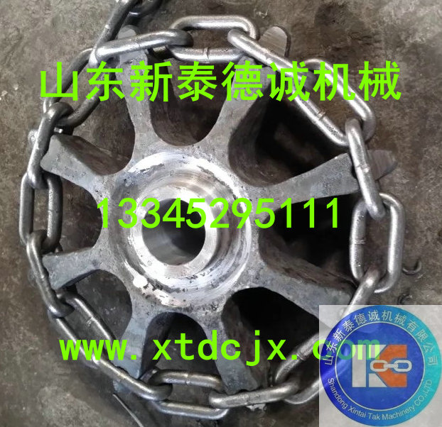 传动组件包括:电机减速机、链轮、传动轴和驱动箱。输送组件包括:链条和刮片。管道组件包括:管子、转角弯头、进出料口